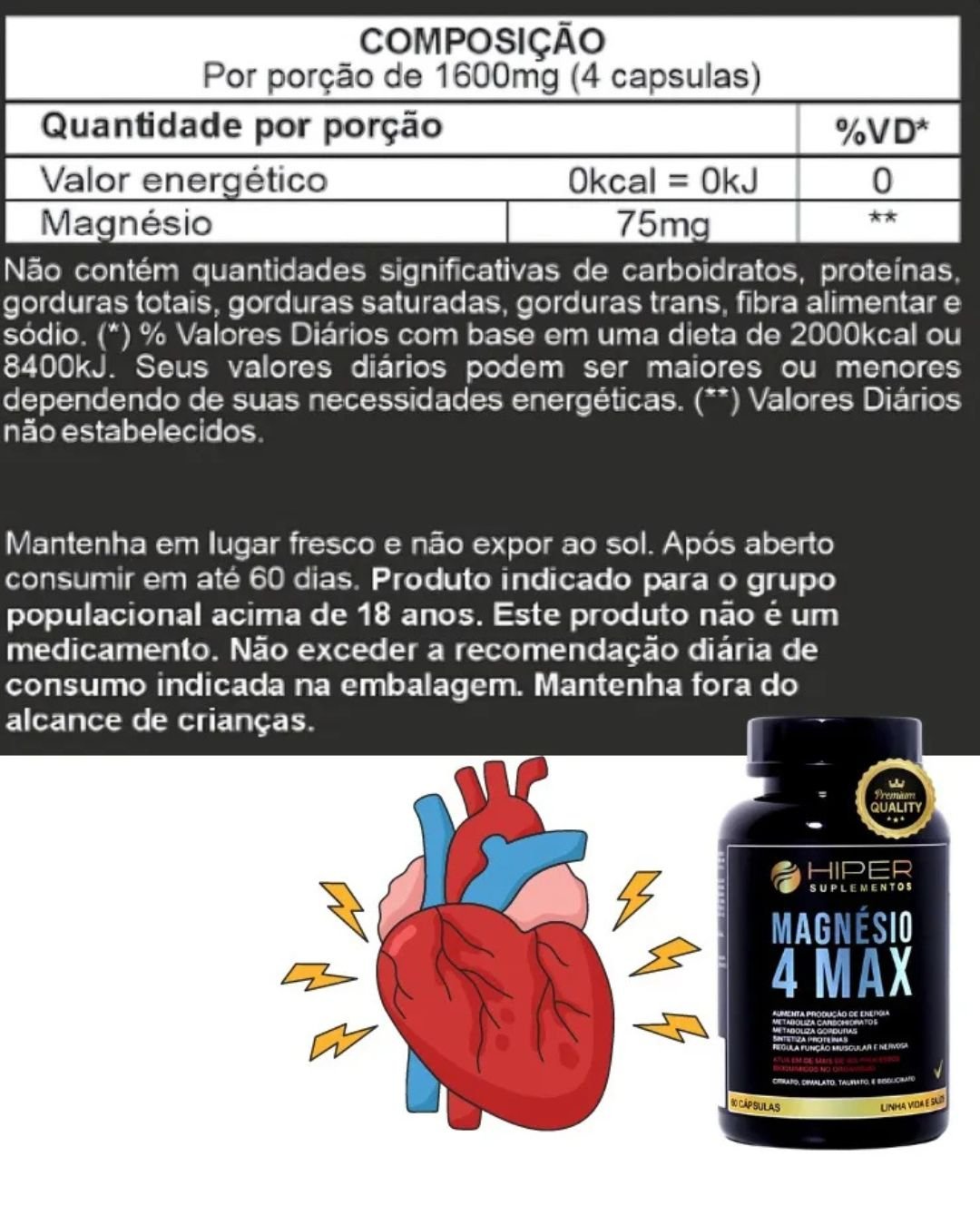 MAGNÉSIO 4 MAX 60 CÁPSULAS – HIPER SUPLEMENTOS